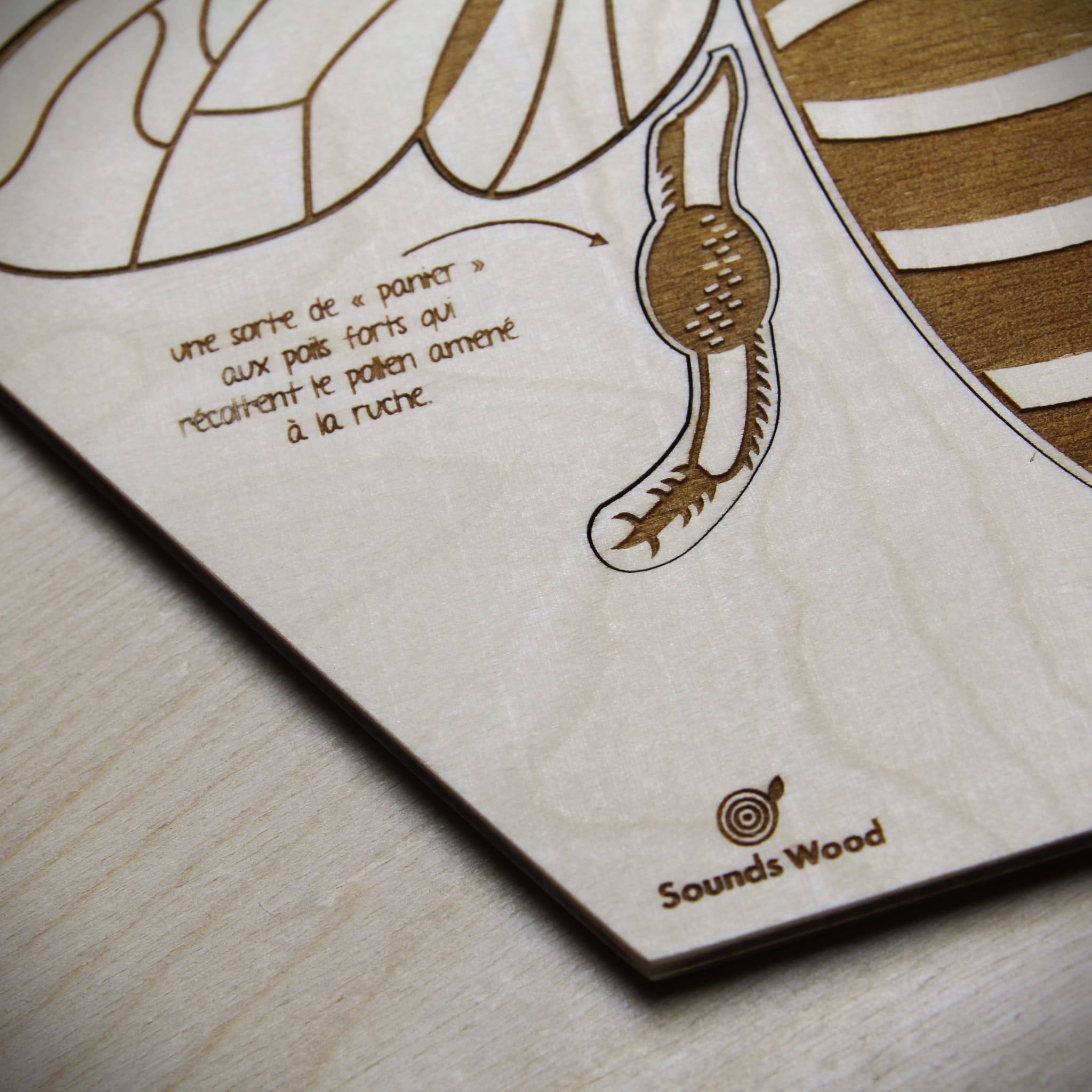 A wooden puzzle by Sounds Wood illustrating the anatomy of a bee through uniquely shaped wooden pieces – a perfect blend of fun and learning
