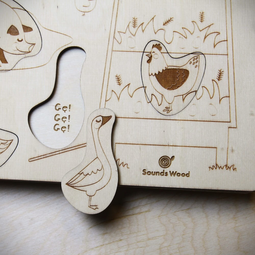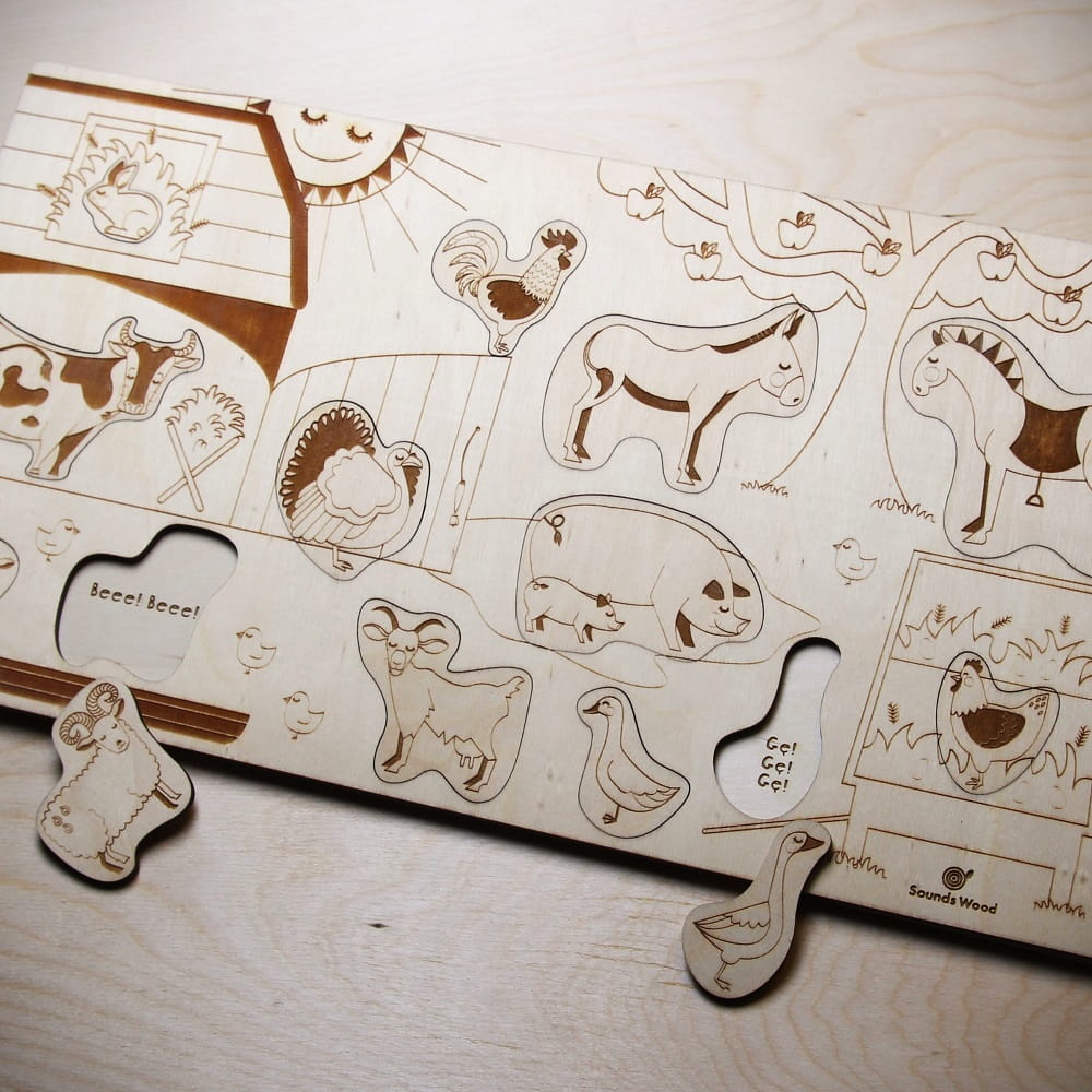 Educational wooden puzzle "Country life" Country animals Sounds Wood