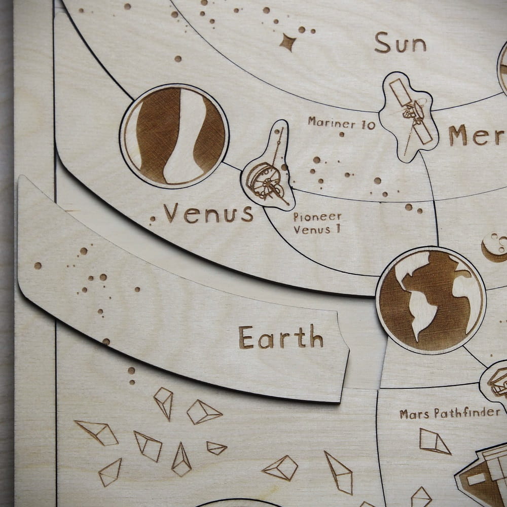 Wooden solar system model by Sounds Wood in the form of variously shaped wooden puzzles – a perfect combination of fun and learning