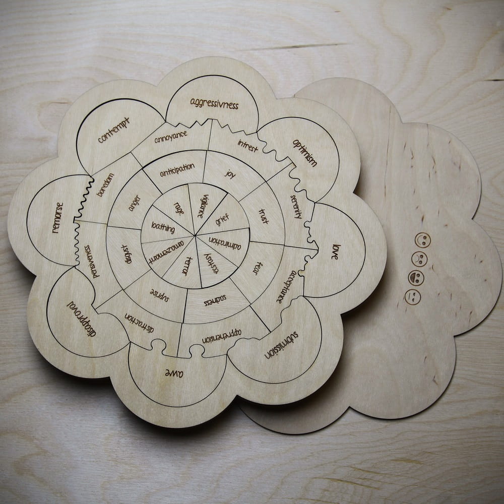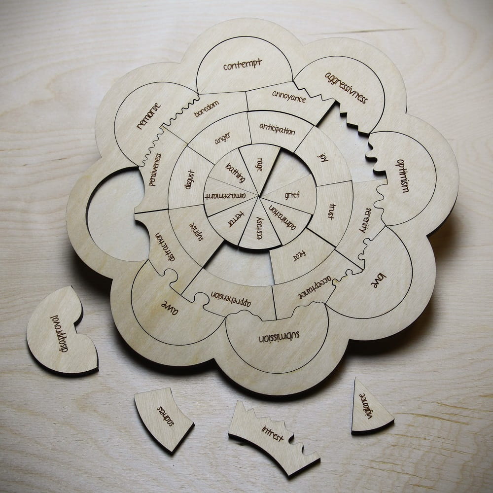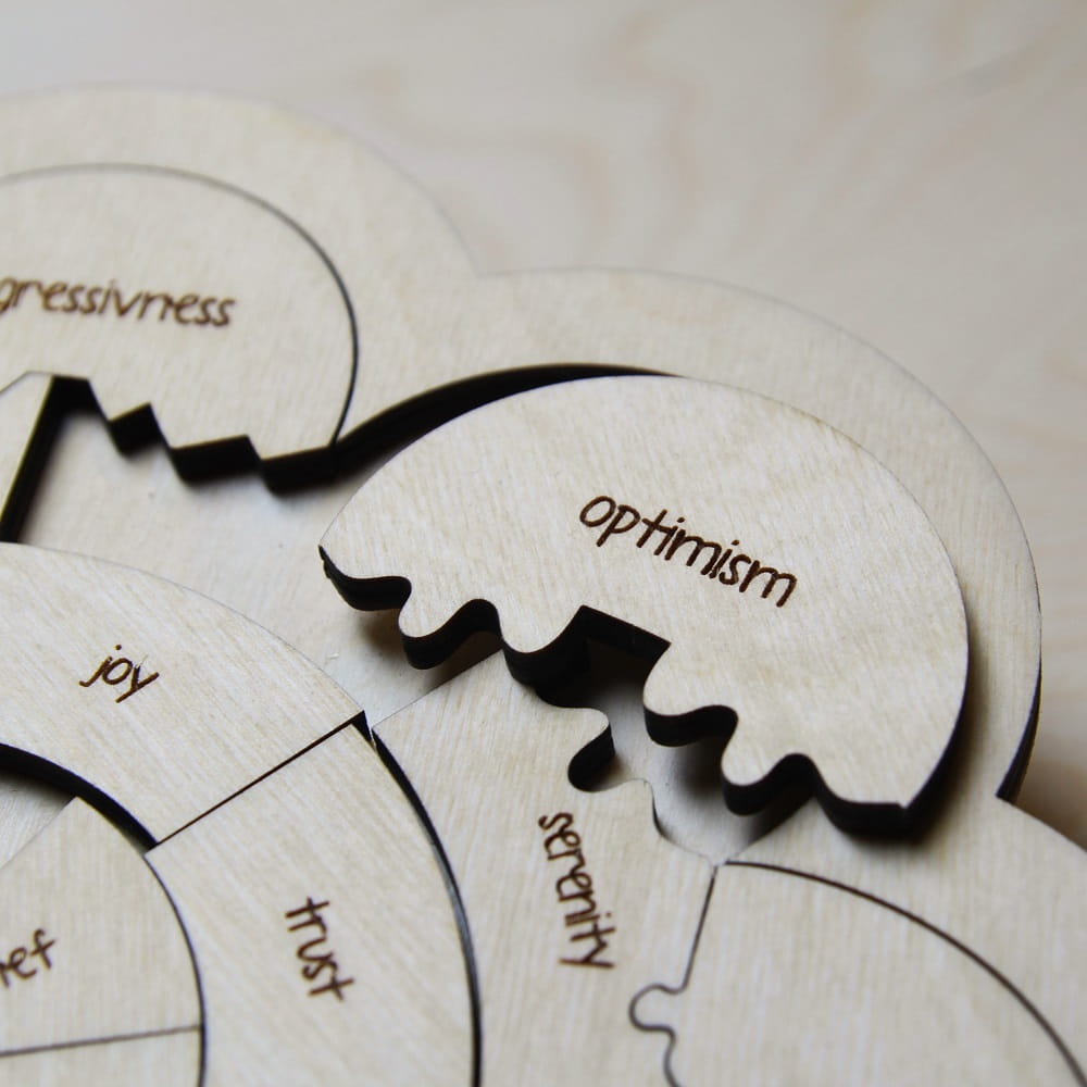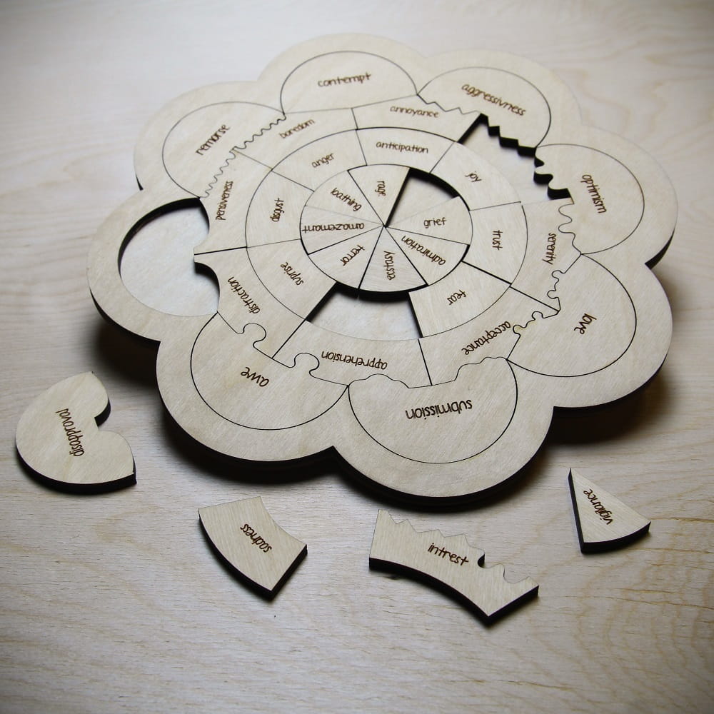Wooden puzzles illustrating emotional complexity by Sounds Wood – a perfect blend of play and learning through uniquely shaped wooden elements